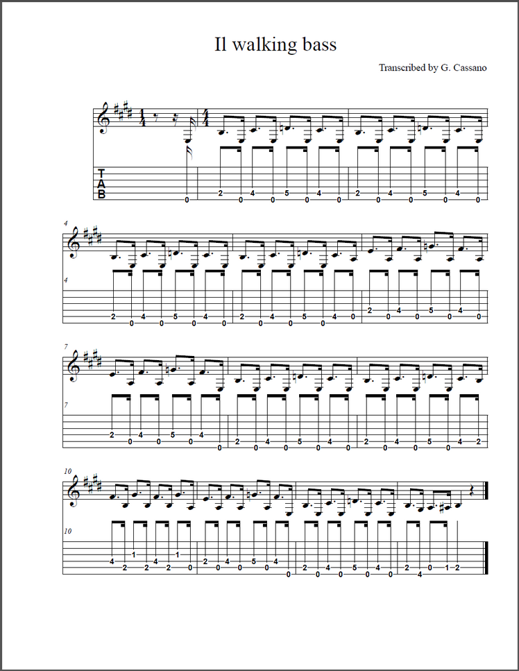 Il walking bass, chiamato da alcuni "boogie-woogie beat", consiste in un movimento della linea dei bassi che attribuisce al brano una maggiore dinamicità. I chitarristi blues fingerstyle ne fanno largo uso.